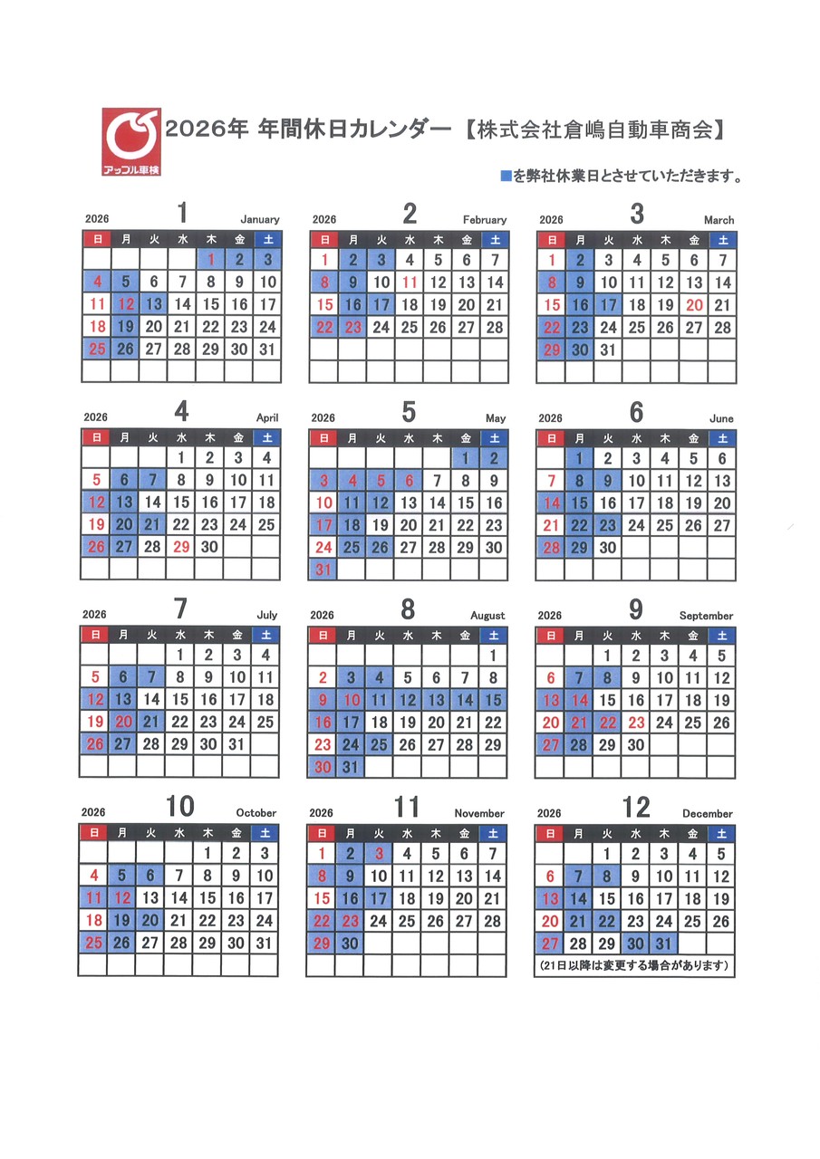 誠に勝手ながら下記の日程をお休みとさせていただきます
